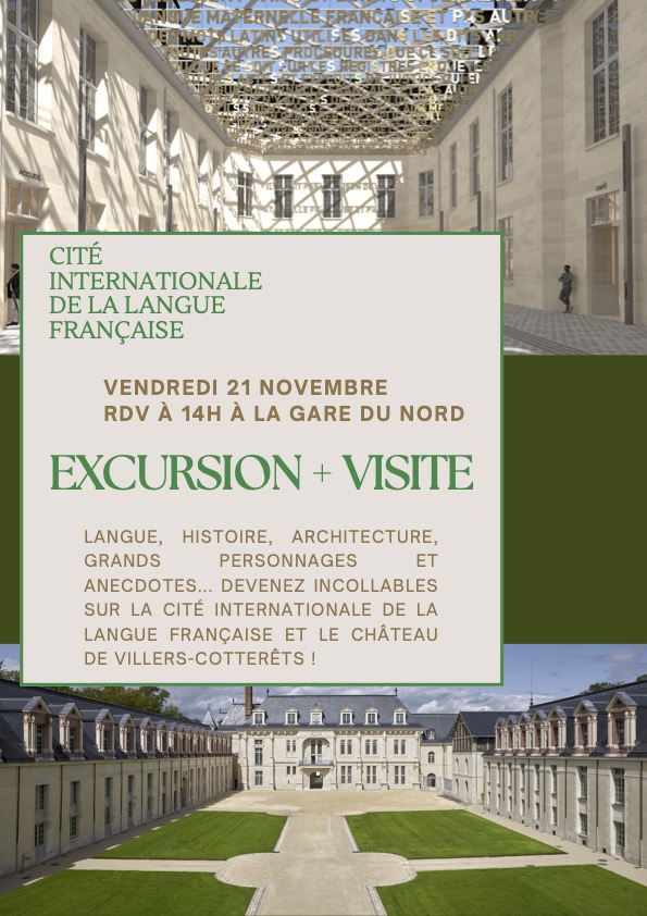 Alice, our FLE coordinator and phonology teacher, will take her class and any other interested students on an afternoon trip to the French language museum in Villers-Cotterêts. The new museum, […] |
